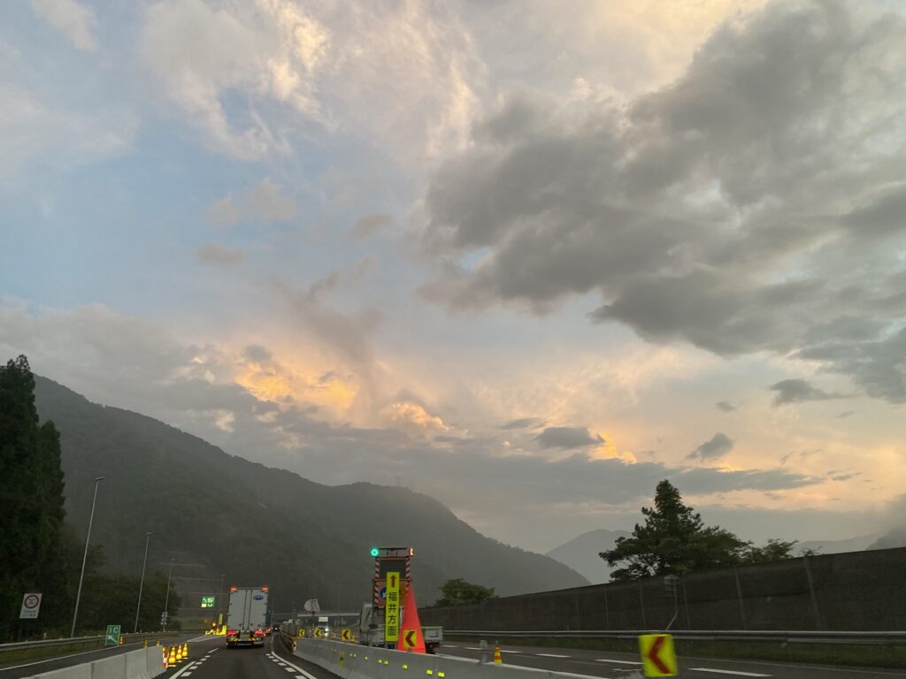 しばらく走っていると、少しずつ空の色が変わってきて、荘厳な空が広がってきた