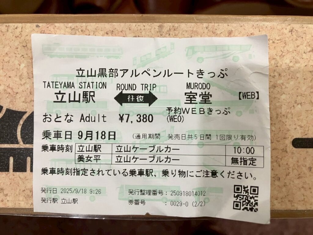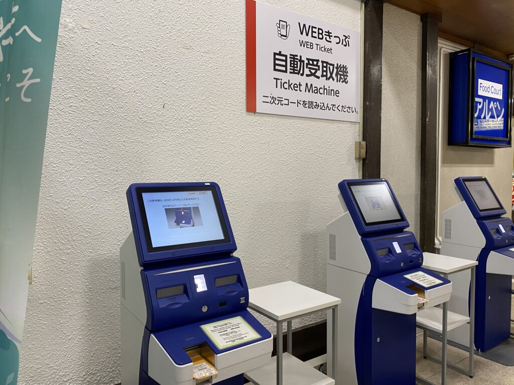 予約していたWEBきっぷを機械で受付けし、紙のきっぷを出す(アルペンルートはこの一枚のきっぷ)