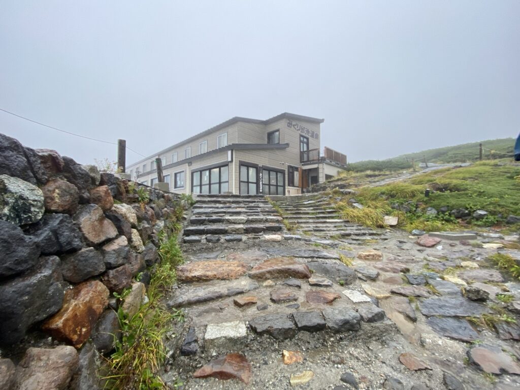 駅で雨ガッパを着て、日本最高地の温泉宿♨️みくりが池温泉へ